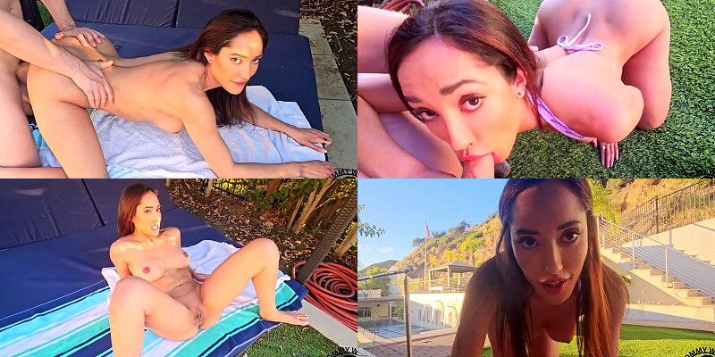 Big Boobs Fit Latina Gets Caught Tanning Naked by the Pool.