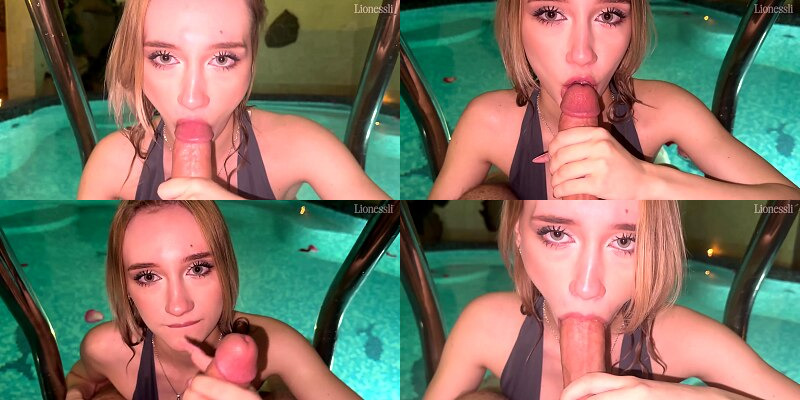 Her deep throat in the pool shocked the big cock