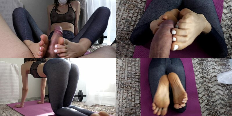 Quarantine Footjob and Sexy Yoga with Fit Girl in Coronavirus Mask